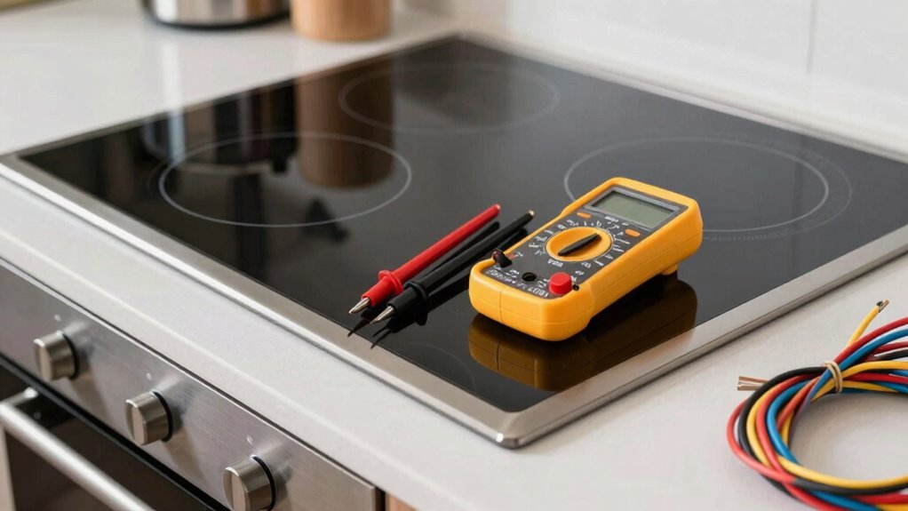 In addition to ensuring the correct power supply and circuit capacity, you should confirm that your electrical system includes proper grounding. Proper grounding minimizes the risk of electrical shock and protects your appliance and household. If you’re unsure about your electrical setup, don’t attempt to modify it yourself—consult a professional. Taking these steps before buying and installing your induction range guarantees safer operation, enhances performance, and helps you avoid costly electrical issues down the line. Remember, the right electrical foundation is key to enjoying the full benefits of your new appliance without risking safety or efficiency. Additionally, understanding high load demands is crucial for maintaining the safety and longevity of your electrical system when installing high-power appliances.