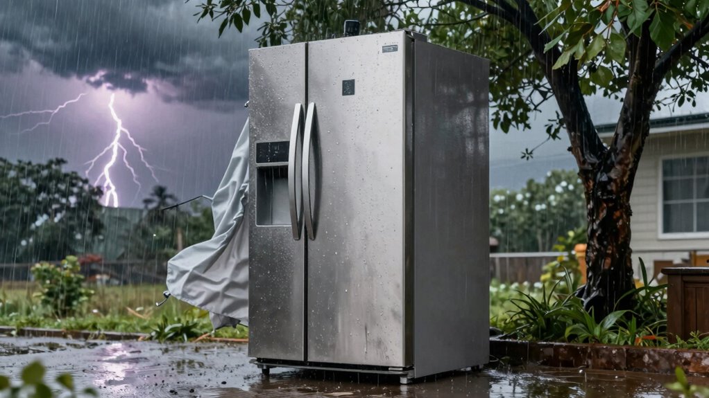 Think of outdoor-rated fridges as brave explorers steering a stormy sea; they’re built tough to withstand the elements, unlike indoor models that falter like fragile boats. Choosing the right fridge is like equipping your vessel with sturdy sails and a resilient hull—ensuring your outdoor adventures stay cool and stress-free. Don’t let your outdoor space turn into uncharted waters. Invest in the right gear, and you’ll sail smoothly through any weather, keeping your essentials safe and chill.
