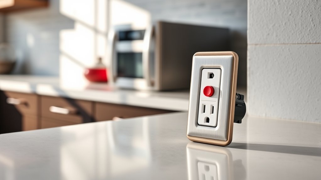 You might wonder if GFCI outlets work with all your kitchen appliances. Generally, they’re compatible with most devices, especially those with cords that have three-prong plugs. However, high-power appliances like large ovens or refrigerators may trip GFCIs if there’s a fault or ground issue. Always check your appliance’s specifications and verify your GFCI is rated for the load. When in doubt, consult an electrician for compatibility concerns.