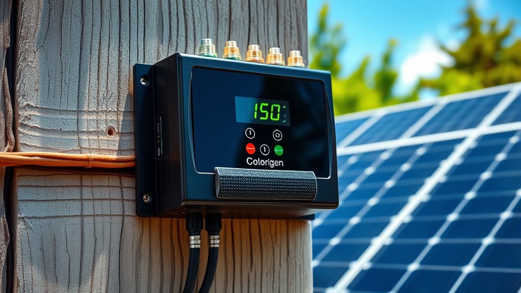 Adjustable charge settings allow you to fine-tune your solar system’s performance to match your specific battery and appliance requirements. With these settings, you can control the charging voltage and current, ensuring your batteries are charged ideally without risking damage. This feature is especially useful if you use different battery types or need to adapt to changing conditions. By customizing the charge parameters, you optimize battery lifespan and system efficiency. Some controllers let you set bulk, absorption, and float voltages manually, giving you greater control over the entire charging cycle. This flexibility helps prevent overcharging or undercharging, which can harm your batteries over time. Overall, adjustable charge settings empower you to tailor your solar system for maximum performance and longevity.