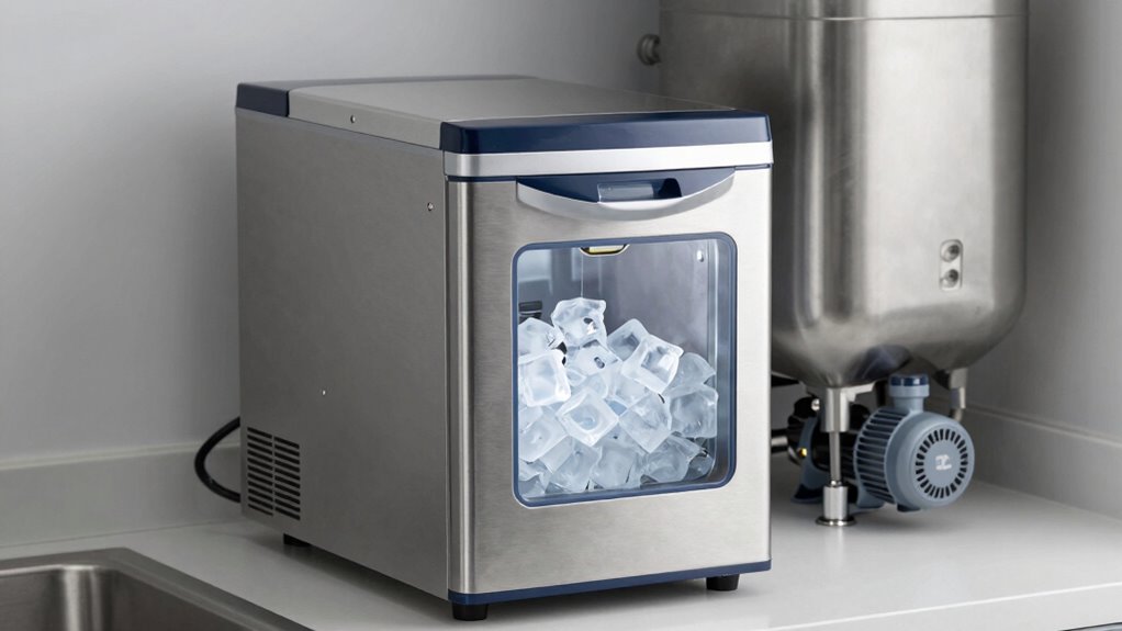 When choosing between a drain, pump, or tank for your undercounter ice maker, consider your space and water management needs. If you have a drain nearby, a direct drain connection is simple and low-maintenance. A pump works well if a drain isn’t easily accessible, pumping wastewater to a distant drain. A water tank is ideal for areas with strict drainage restrictions or limited plumbing options. To find the best fit for your setup, explore each option’s advantages as you continue.