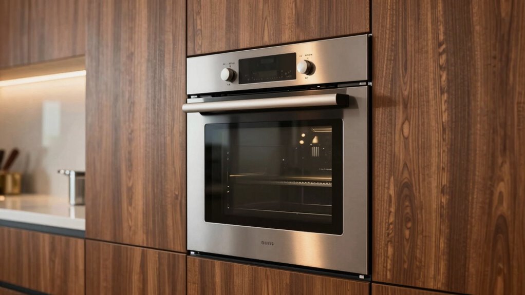 You should install your wall oven at eye level for maximum ergonomic comfort and installation ease. Aim to position it so you don’t have to bend, reach, or strain—your back will thank you! Measure carefully, considering your height and countertop clearance, and use adjustable brackets if available. This simple step prevents back pain and makes cooking a breeze, transforming your kitchen into a truly comfortable space.