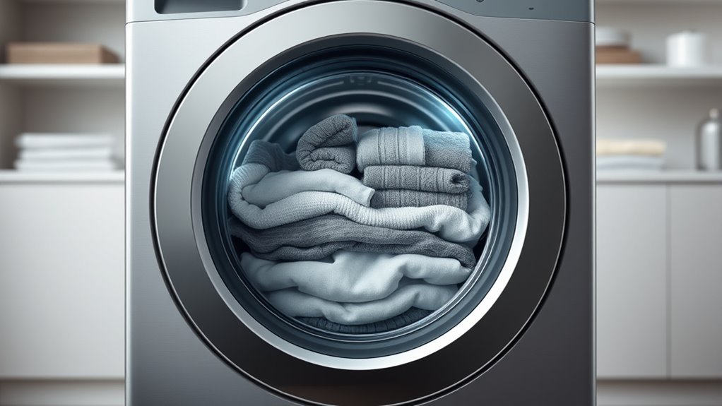 By managing your laundry loads wisely, you guarantee your washing machine runs smoothly and lasts longer. Overloading or underloading can cause unnecessary wear, just like ancient chariots breaking down before reaching their destination. Think of proper load management as your modern chariot’s upkeep—preserving efficiency and preventing breakdowns. Remember, a well-maintained machine is your trusty steed for clean clothes, so don’t forget: a little care today keeps your laundry journey seamless tomorrow.