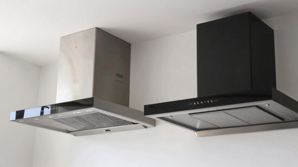 When choosing a range hood for your kitchen, understanding the differences between ducted and ductless options is essential. These choices directly impact your air quality and energy efficiency, so knowing how each functions helps you make an informed decision. Ducted hoods vent cooking fumes, smoke, and odors outside through ductwork, which means they effectively remove airborne contaminants from your kitchen. This often results in better air quality because pollutants are expelled rather than just filtered. On the other hand, ductless hoods, also known as recirculating hoods, use filters—usually charcoal—to clean the air before releasing it back into the room. While they are easier to install and require no ductwork, they may not be as effective in maintaining ideal air quality, especially in kitchens with heavy cooking or strong odors.