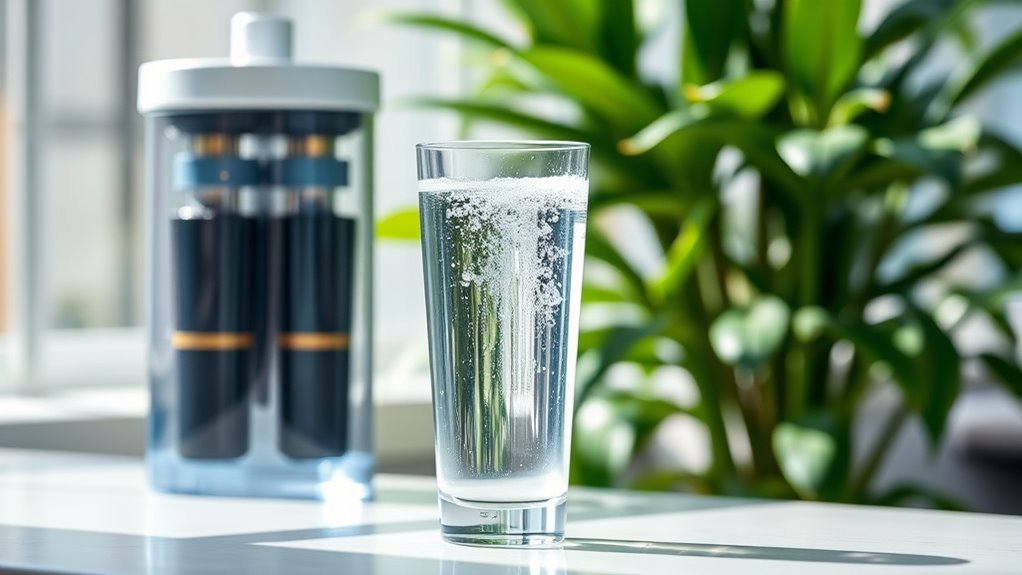 Water filtration systems offer a simple yet effective way to improve the quality of your drinking water. When you choose a system, you’re investing in your health by removing contaminants and impurities that can harm your body over time. Modern filtration units utilize advanced purification technology, which guarantees that your water is not only clean but also safe to drink. These systems typically combine multiple filtration stages, such as activated carbon filters, reverse osmosis membranes, or UV sterilization, each targeting specific pollutants like chlorine, lead, bacteria, and volatile organic compounds. This layered approach ensures thorough removal of harmful substances, giving you peace of mind with every glass.