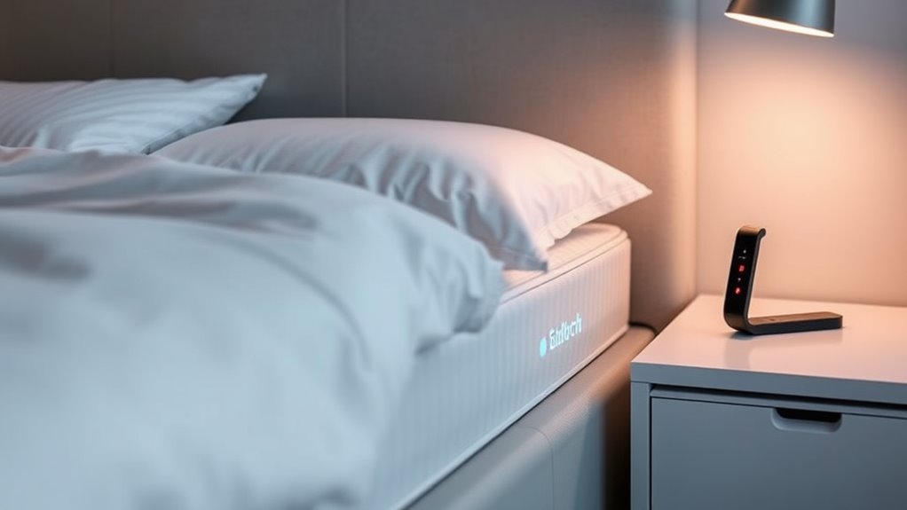 Have you ever wondered how technology can enhance your sleep quality and overall wellness? Smart mattresses and sleep trackers make that possible by providing detailed insights into your sleep patterns. One key feature they offer is sleep cycle analysis, a process that monitors your sleep stages—light, deep, and REM sleep—through sensors embedded in your mattress or wearable devices. By analyzing these cycles, you can identify patterns and disruptions that may be affecting your rest. For instance, if you notice frequent awakenings during the night or a lack of deep sleep, you can take targeted steps to improve your habits or environment. This real-time feedback helps you understand exactly how well you’re sleeping, empowering you to make informed adjustments for better health.