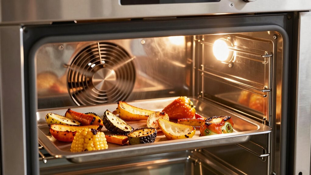 Certain foods are better suited for convection ovens, especially those involving baking techniques like roasting or crispy foods. You’ll find that foods with a good food pairing, such as vegetables, poultry, or pastries, benefit from the even heat distribution. Convection enhances browning and crispiness, making it ideal for achieving perfect textures. So, when planning your recipes, choose items that thrive with dry heat to maximize convection oven benefits.