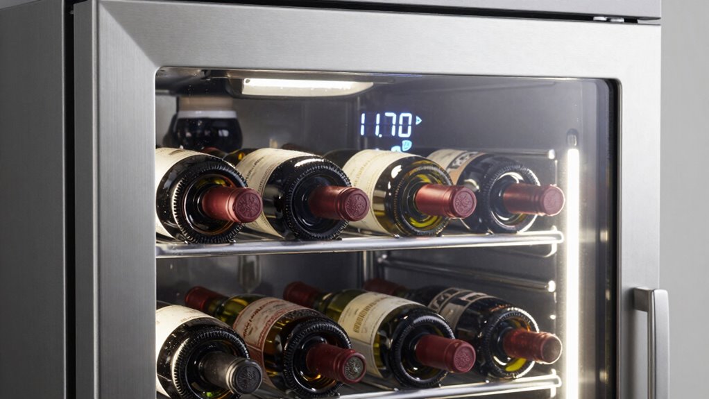 Maintaining the right temperature in your wine fridge is essential for preserving the wine’s quality and flavor. Proper wine storage isn’t just about keeping bottles out of the sun; it’s about creating an environment that supports aging and preserves the wine’s intended characteristics. Temperature control plays a pivotal role in this process. When your wine fridge maintains a consistent, ideal temperature, you help prevent the wine from aging too quickly or developing undesirable flavors. Fluctuations in temperature can cause the wine to expand and contract, which may lead to corks drying out or pushing the corks out, risking oxidation and spoilage. That’s why understanding and managing your wine fridge’s temperature is vital for safeguarding your collection. Temperature consistency is crucial for ensuring your wine ages properly and maintains its quality over time. Most experts recommend setting your wine fridge between 45°F and 65°F (7°C to 18°C), with the perfect range often around 55°F (13°C). This range balances the need for aging wines and serving wines at the right temperature. For long-term wine storage, cooler temperatures close to 55°F help slow down chemical reactions, ensuring the wine ages gracefully. If you’re storing wine for immediate drinking, slightly warmer temperatures within the recommended range can bring out more aromatic qualities. The key is to keep the temperature steady; sudden changes or frequent fluctuations can undermine your efforts, leading to compromised wine quality. Many modern wine fridges feature precise temperature control systems, allowing you to fine-tune the environment and maintain consistent conditions. If your fridge lacks this feature, you might consider investing in a reliable thermometer and regularly checking the temperature to prevent any surprises.