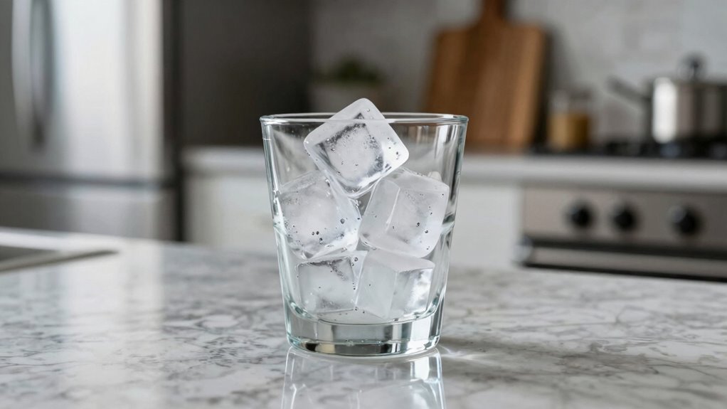 You should clean your ice maker every 3 to 6 months to guarantee ideal ice quality. Regular ice machine maintenance helps prevent buildup of mineral deposits, which can affect water mineral content and cause weird-tasting ice. If you notice your ice tasting strange sooner, clean it more often. Use a mixture of vinegar and water or a commercial cleaner to remove scale and bacteria, keeping your ice fresh and tasting great.