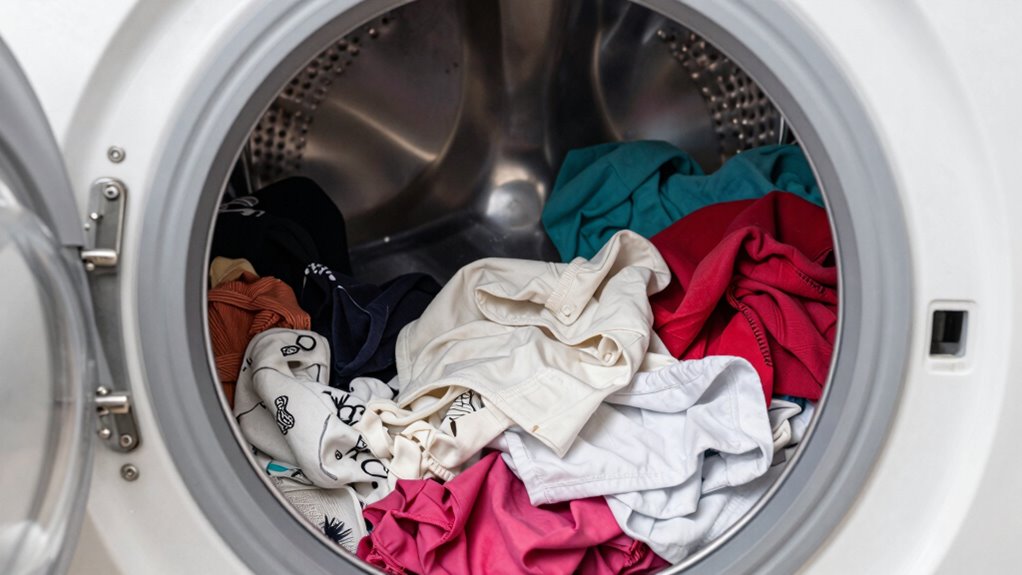 Choosing the right washer load size is essential for efficient laundry cycles and ideal machine performance. When you load your washer properly, you not only ensure your clothes get cleaned thoroughly but also optimize detergent efficiency and reduce energy consumption. Overloading your washer might seem like a time-saver, but it actually hampers its effectiveness and can cause long-term damage. When you stuff the drum beyond its capacity, the washer struggles to agitate clothes properly, leading to poor cleaning results. Furthermore, overstuffed loads prevent water and detergent from circulating evenly, which means you’ll likely use more detergent than necessary to compensate for ineffective cleaning. This wastes detergent and increases your overall laundry costs.
