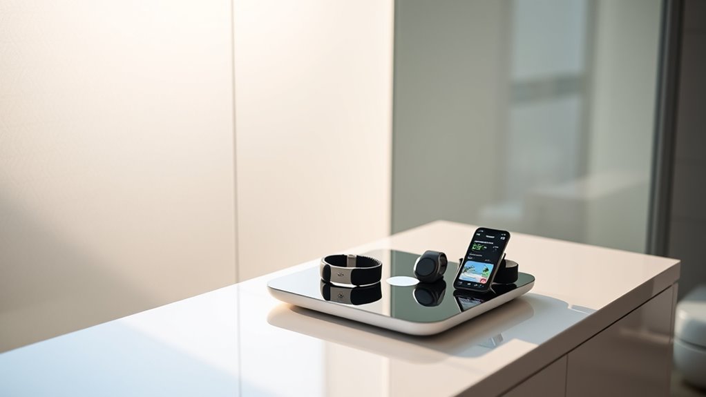 When you sync your smart scale or fitness tracker with your smartphone or computer, your data gets transmitted and stored either locally or on cloud servers. This is where data privacy becomes a concern. You need to be confident that your sensitive health information is protected from breaches or misuse. Reputable brands prioritize encryption and transparent privacy policies, so make sure you verify how your data is handled before committing. Knowing that your personal health info isn’t vulnerable gives you peace of mind to fully engage with these AI-driven tools.