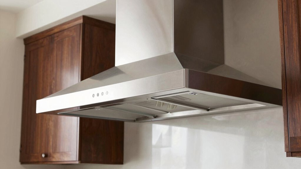 Maintaining your range hood is pretty straightforward. I clean the filters regularly—usually every one to three months—depending on how often I cook. I also wipe down the exterior with a damp cloth to remove grease and dust. If it’s a vented hood, I check the ductwork periodically for blockages. Keeping up with these simple tasks guarantees my hood runs efficiently and looks great for years to come.