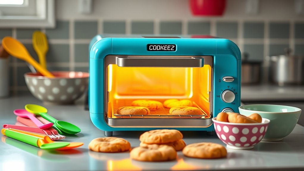 Absolutely, Cookeez ovens come with safety features to give you peace of mind. I love how they include automatic shut-off, preventing overheating, and a cool-touch exterior to avoid burns. Plus, their non-slip bases keep the oven steady during use. I know safety is a concern, but these thoughtful features make baking fun and worry-free, so you can focus on creating delicious treats without any stress.