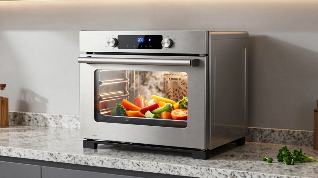 Modern countertop steam ovens come equipped with several safety features to keep you protected. I appreciate features like automatic shut-off, which activates if the oven gets too hot or after cooking completes. Many also have cool-touch exteriors, preventing burns, and sealed water reservoirs to avoid spills. Some models include child locks for added safety. These features give me peace of mind while enjoying healthy, steamed meals without worry.