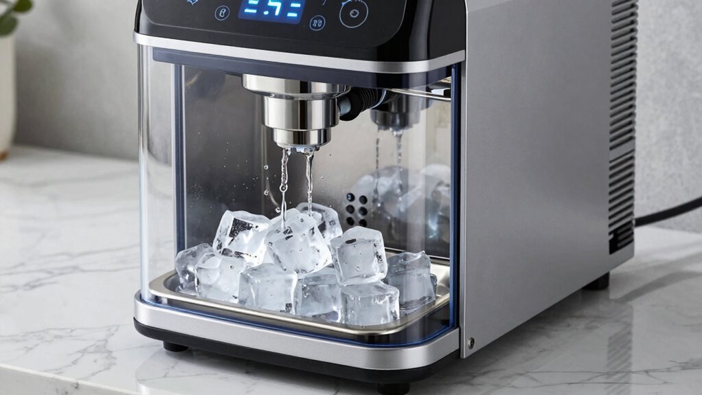 Ice production capacity is a crucial factor when selecting an ice maker with a drain pump, especially if you need it to keep up with high demand. It’s usually measured in pounds per 24 hours, giving you a clear idea of how much ice the machine can produce daily. The cycle time for making ice varies from 8 to 20 minutes, which impacts how much ice you get over a day. Different ice types, like clear or nugget, can also influence how quickly ice is produced and how suitable it is for your needs. For commercial use, a higher capacity is essential, while smaller capacities work fine for home use. Additionally, the storage bin size affects how long you can go without needing more ice.
