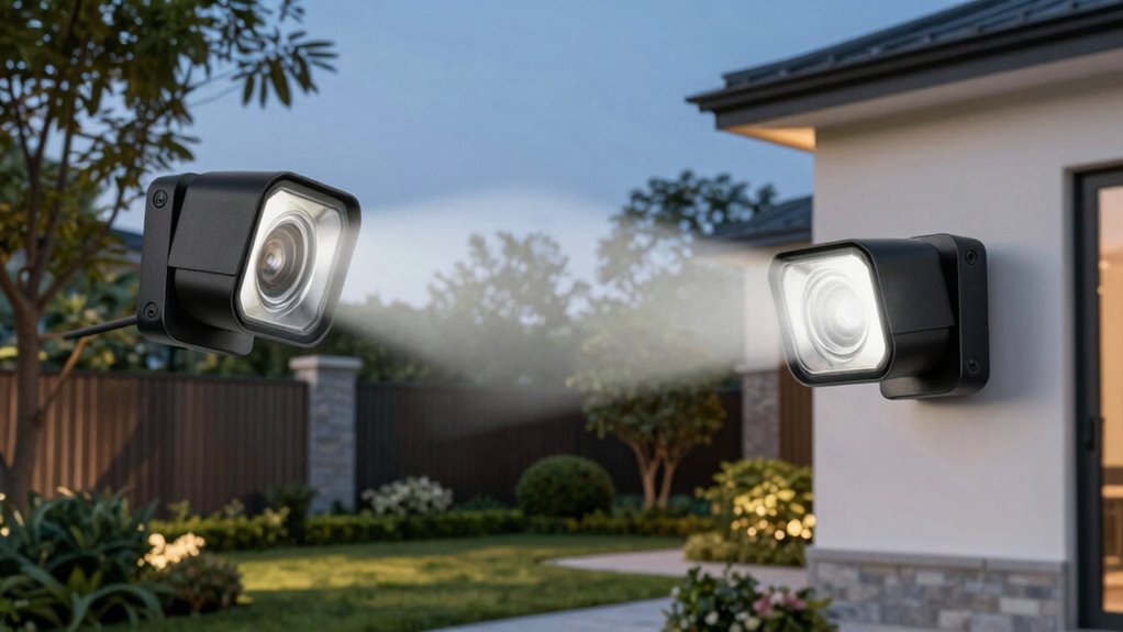Did you know that homes with outdoor lighting are 20% less likely to experience a break-in? I believe floodlights with cameras are highly effective in deterring intruders because they illuminate dark areas and record suspicious activity. When I installed one, I noticed increased security and peace of mind. They’re a smart investment, making it easier to spot and respond to potential threats before anything serious happens.