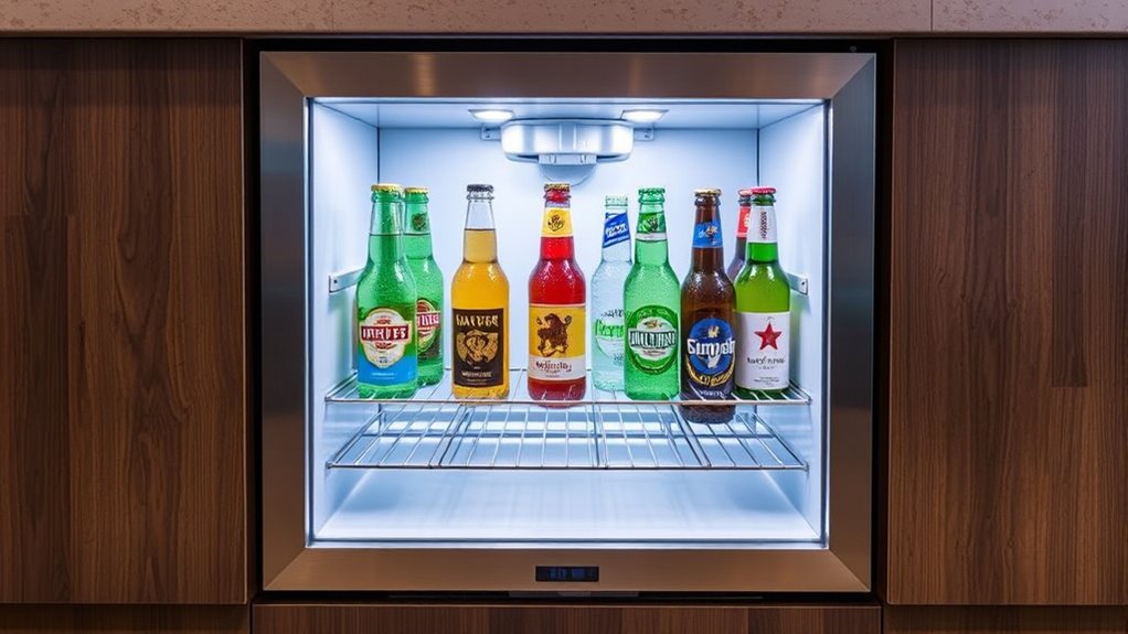 These beverage refrigerators are quite energy-efficient, especially models with modern insulation and temperature control. I’ve noticed they consume less power than traditional units, thanks to better insulation and energy-saving features. When I choose one, I look for Energy Star ratings, which ensure they’re environmentally friendly and cost-effective over time. Overall, I’d say they’re a smart choice for keeping drinks cold without draining your electricity bill.